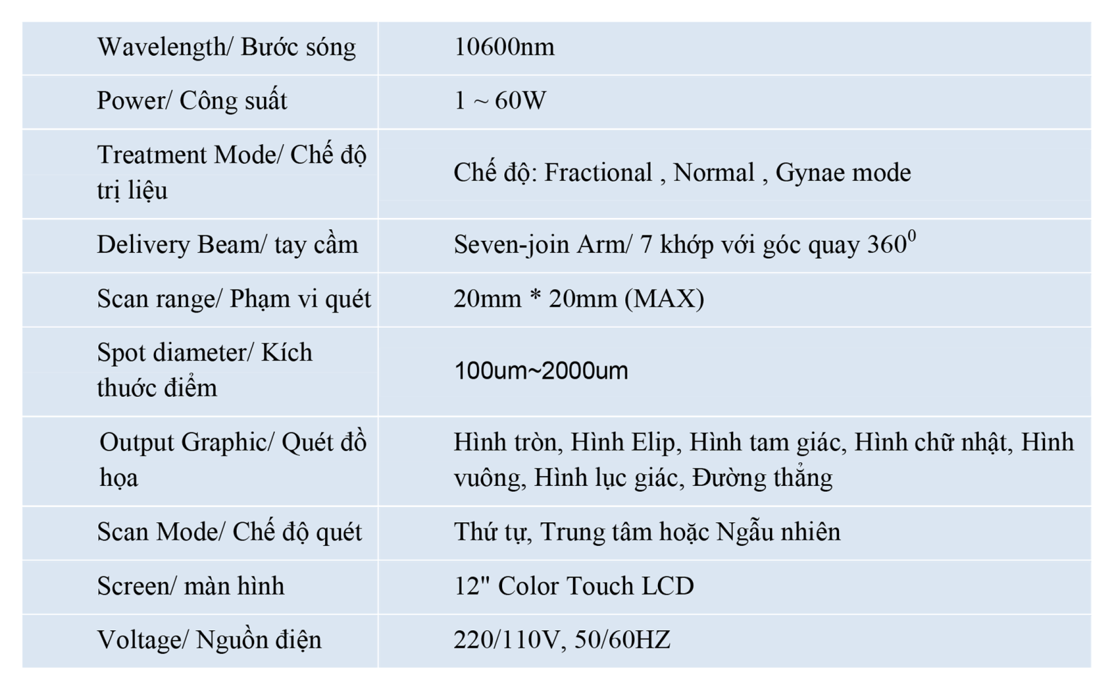 - True Ultrapulse với độ rộng xung 0,2ms