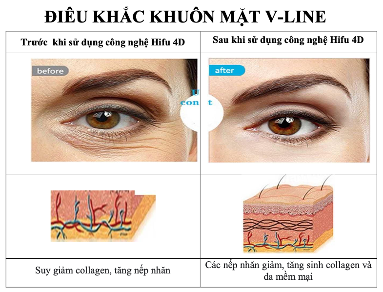 Với sóng siêu âm hội tụ năng lượng cao, có thể tiếp cận trực tiếp đến lớp SMAS, làm chậm quá trình lão hóa, giải quyết toàn diện các vấn đề về chảy xệ và giãn của khuôn mặt. Nó định vị chính xác năng lượng sóng siêu âm sâu tới 4,5mm dưới bề da, lớp này đóng vai trò giúp lớp sụn tăng trưởng và kéo cơ để đạt được hiệu quả tốt nhất trong việc định hình cơ thể và làm săn chắc da. Nó tác động sâu tới 3mm tầng trung bì để trẻ hóa collagen và đạt được các vấn đề chống lão hóa như đàn hồi da, làm trắng, xóa nếp nhăn và thu nhỏ lỗ chân lông. Đồng thời, do năng lượng quét nhanh qua lớp biểu bì nên không gây tổn thương bề mặt da.