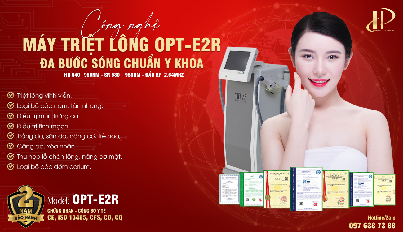 Máy triệt lông OPT-E2R đại diện cho thế hệ thiết bị thẩm mỹ sử dụng công nghệ ánh sáng tiên tiến nhất hiện nay là OPT (Optimal Pulse Technology). Đây là giải pháp hoàn hảo để triệt sạch lông, mang lại làn da mịn màng, đồng thời cải thiện chất lượng da một cách rõ rệt. Là thiết bị được CÔNG TY THIẾT BỊ THẨM MỸ PHƯƠNG ĐÔNG nhập khẩu chính hãng và độc quyền tại thị trường Việt Nam, đã qua quy trình kiểm tra chất lượng nghiêm ngặt, đảm bảo hiệu suất hoạt động ổn định và an toàn tuyệt đối.